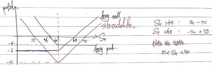 A call with strike 60 costs 6. A put with the same strike and expiration costs 4. Fill in the straddle profit table. For what range of $S$ does the straddle lose money?