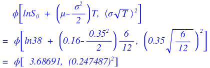 Current stock price 38, expected return 16%, volatility 35%.