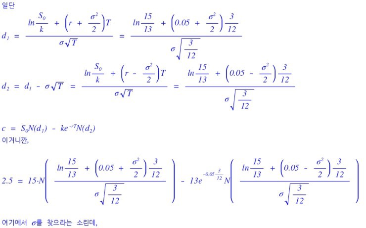 Price of a call on a non-dividend-paying stock is $2.50. Current stock price 15, strike 13, maturity 3 months, risk-free rate 5%. Find the implied volatility.