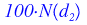 So — the probability that $S_T > K$ is $N(d_2)$, and multiplying by the payout amount of 100 gives us the expected value of the derivative.