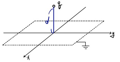Problem: A point charge q is located at a distance d above a grounded infinite conducting plane. What is the potential above the plane?
