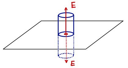 Let’s try takin’ a Gaussian surface on the plate lollollol. As for how to take a Gaussian surface on a plate, we take it as a (suuuper tiny) cylinder.