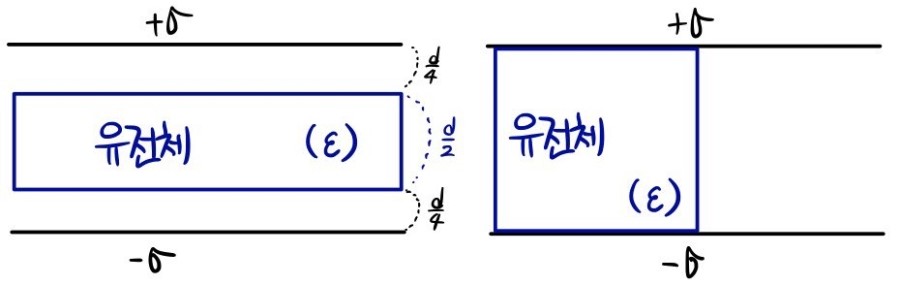 This time let’s find out which way of putting a (linear) dielectric between the capacitor plates gives a bigger capacitance.