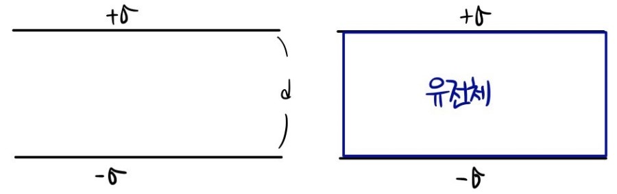 The free charge densities of the upper and lower electrodes are +σ, -σ.