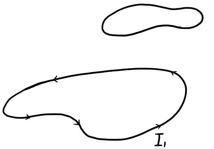 Alright, and while writing out that equation I caught on to something — what if a current equal in magnitude to the I1 from just now flows through loop 2??