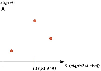 - right at $K$ → at-the-money (ATM, sitting on the boundary)