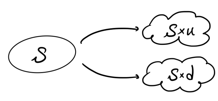 and let’s say after one period it could become $S \times u$ ( $u > 1$ ), or it could become $S \times d$ ( $0 < d < 1 $ ).