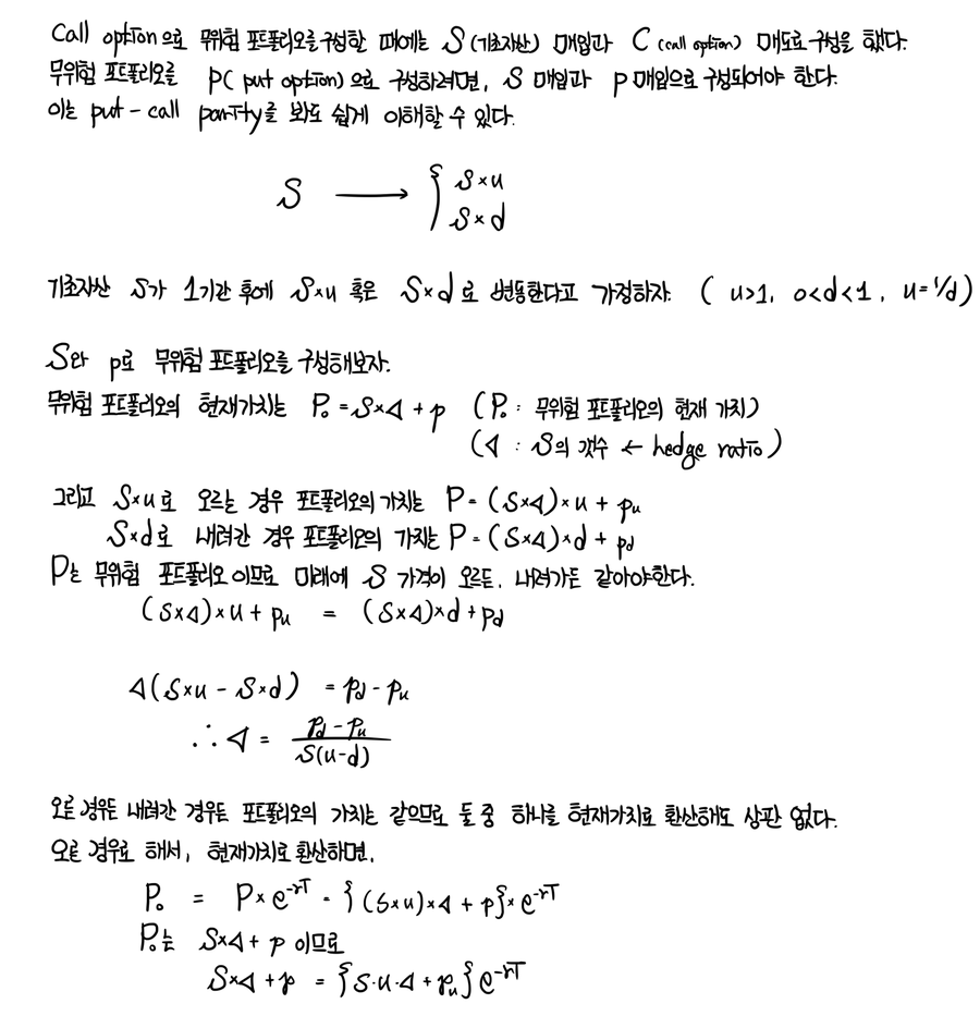 Breaking down the one-period Binomial Model — where stock prices only go up or down — and using that to price a call option with a risk-free portfolio.