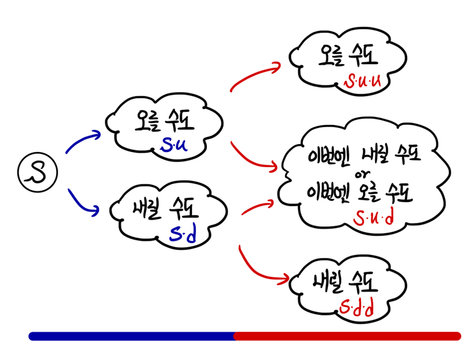 and that’s what the binomial model means: we priced today’s option once, like this… (sob)
