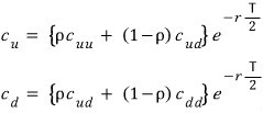 cu = ((rho * cuu) + ((1-rho) * cud)) * df