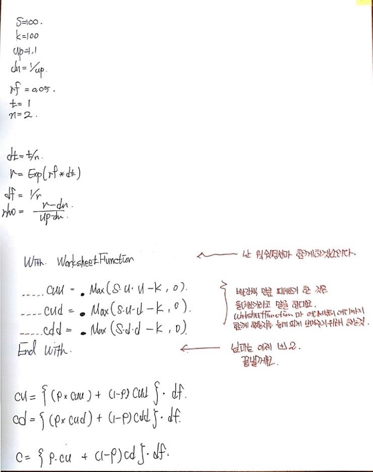 We crank through the two-period binomial model one step at a time, build up the call price formula, and peek at how it naturally generalizes to n periods — heh heh.