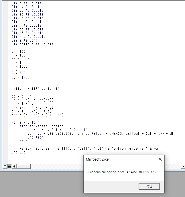 vu = vu + sc.binom(n, rho).pmf(i) * max(callput * (st - k), 0) * df