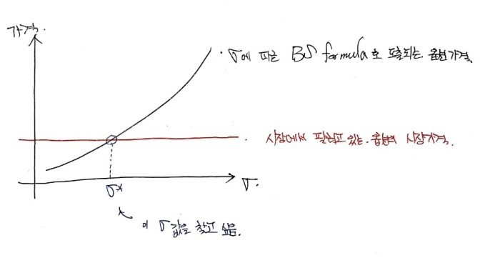 $$\text{BS\_formula}(\sigma) - \text{market price} = 0$$Let’s call the left side $f(\sigma)$: