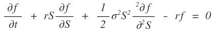 And notice — that “value” function is being partial-differentiated with respect to maturity $t$, and with respect to the underlying $S$, and so on. So yeah, we can comfortably think of $f$ as a function of two variables: $t$ and $S$.