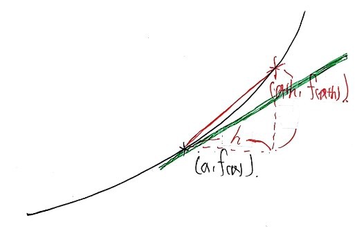 — and that’s the slope of the red line, and then you take $h \to 0$ —