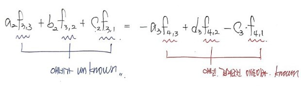if we plug in i=3, j=2, we get an equation in those 3 unknowns~