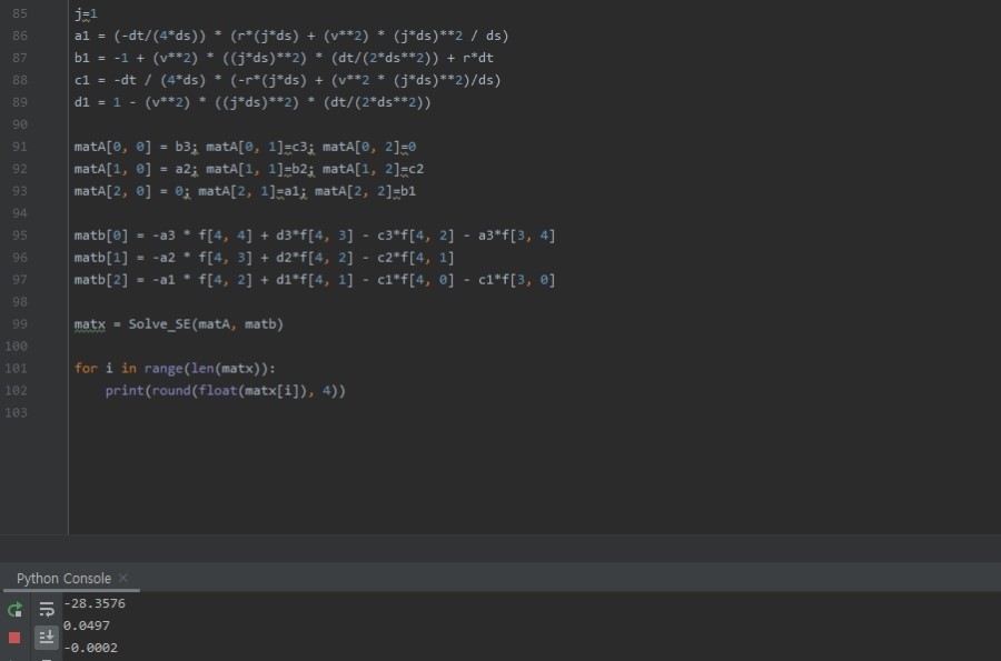 a1 = (-dt/(4*ds)) * (r*(j*ds) + (v**2) * (j*ds)**2 / ds)