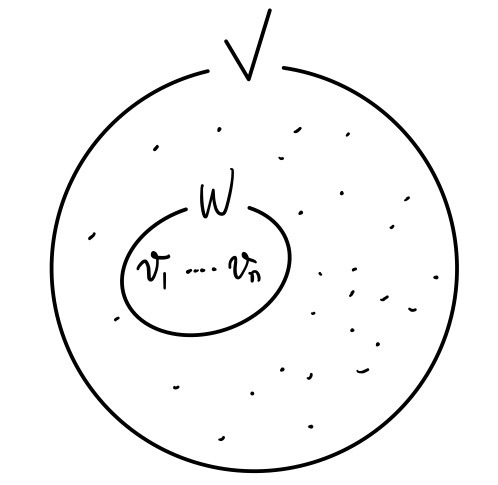 So picture this. We’ve got some vector space $V$, and floating around inside it are a bunch of elements. And then there’s this subset $W$.