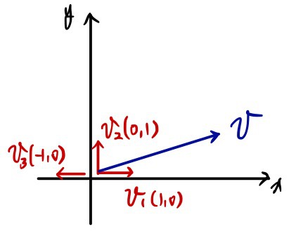 if I try to write the vector $v$ using $v_1, v_2, v_3$…… there’s gonna be a ton of ways.