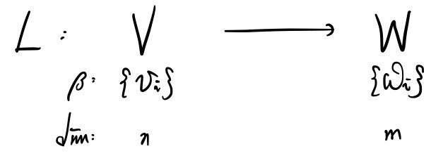 If we want to express that w using the γ basis — well, following the picture above, we should write v in the β basis, and then push it through matrix A!!