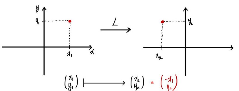(See why the matrix has that shape now?! Take the column vector before the map, hit it with the matrix, and yeah — out comes the reflected point!!)
