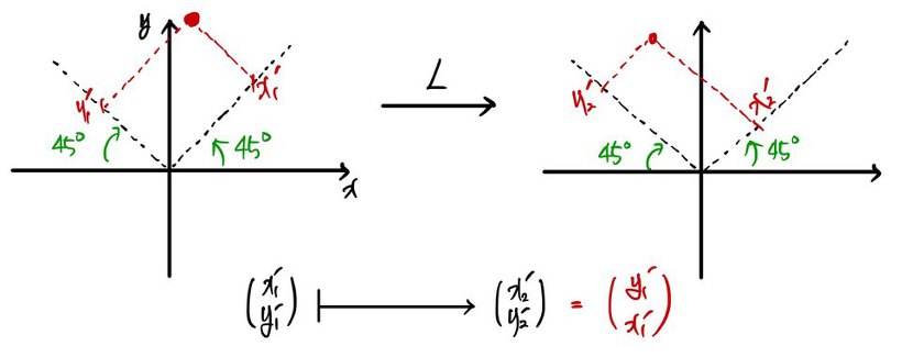 Here’s one example. Take a left-right reflection map L, and let’s see how the matrix shape changes depending on which basis we pick.