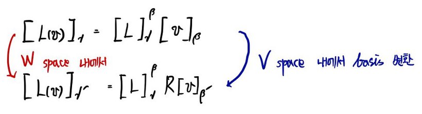 - Multiplying an invertible matrix on the left of a matrix → changing the basis of W.