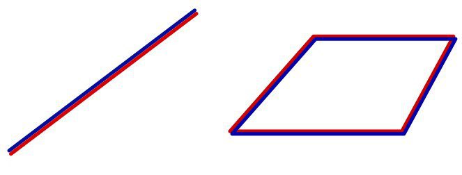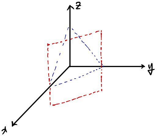 Like on the left: you can have infinitely many because two lines overlap, and you can also have infinitely many because two planes overlap.