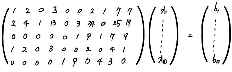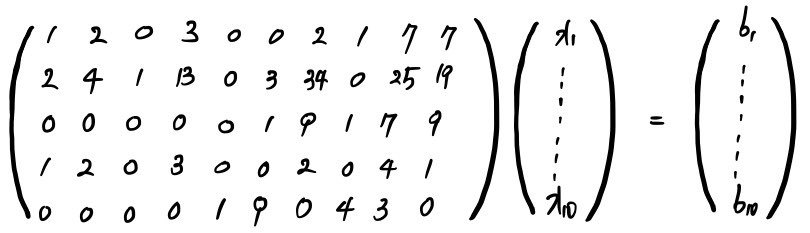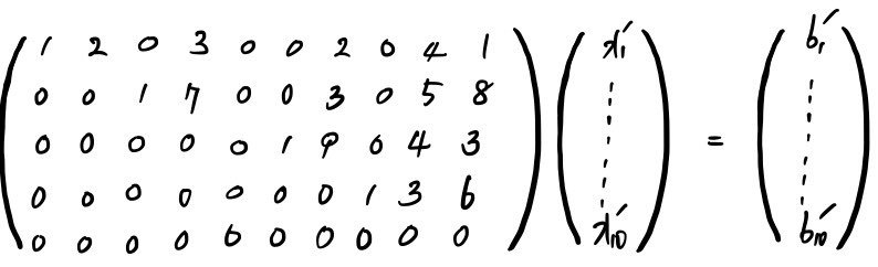 for a giant 5×10 matrix like this, we multiply rows by constants, add and subtract rows