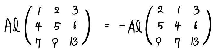 “if you swap any two of the vectors, the Al value becomes (-) of what it was before the swap.”