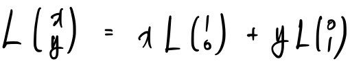 OK so. Remember when we had a linear function L, and to fully pin down what L does to anything, we just plugged the basis vectors into the map?