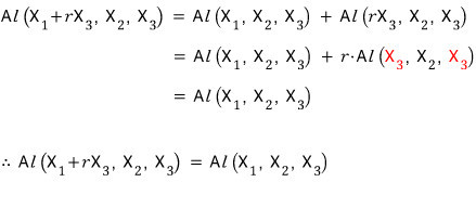 Oh, and just to be safe — since Al is itself a Multi-linear Form, all those properties from earlier still hold, right? Let me write them out before moving on.