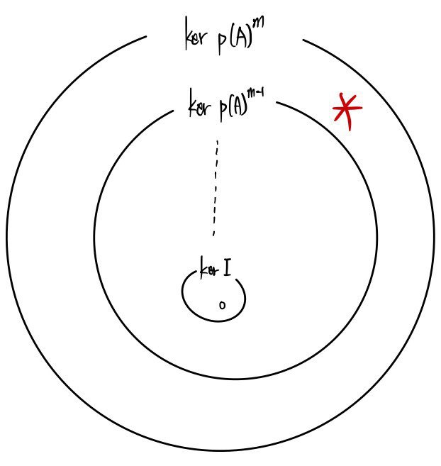 we’re talking about a vector X that does not land inside ker p(A)^(m-1) but lives only inside ker p(A)^m,