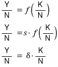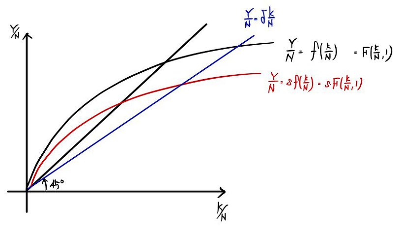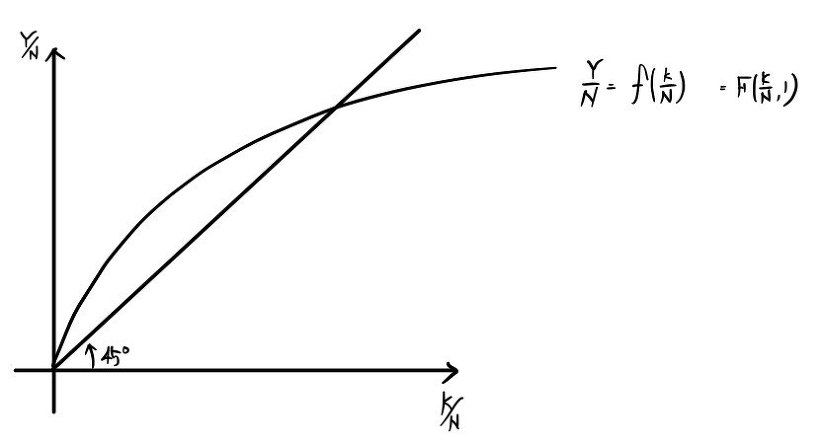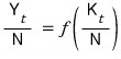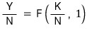 And once we started chasing that thing — output per person — we ended up concluding that it depends on capital per person ($K/N$) and the level of technology ($F(\sim)$).