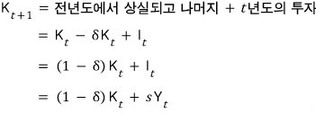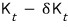 So $K$ is both a flow and a stock thing. The $K$ from year $t$ has been depreciated by $\delta$ —