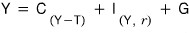 The IS curve — the one that says “goods market in equilibrium” — we derived back in Chapter 5 like this: