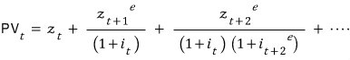 Divide by the price level at that point in time and you get the real present value in units of goods — does this same kind of relationship hold here too??????