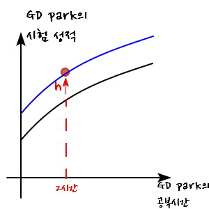 So the new function should look like the blue line — when a girlfriend appears, the curve parallel-shifts upward by h.