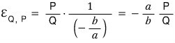 OK. Q is technically not an independent variable, but when things are linear, we can treat Q as if it were one (inverse function exists, no harm done), so I’m going to rewrite the price-elasticity-of-demand formula like this:
