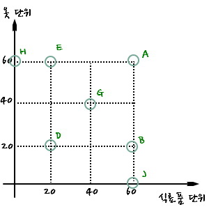Basket J — no clothes, all in on 60 units of food.
