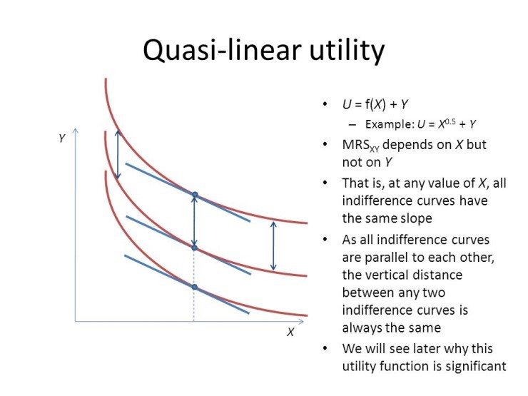 the quasilinear utility function looks like this.