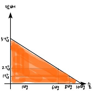Say Mr. Nodap lives in a very ideal world. Income: 10,000 won. Alcohol is 1,000 won a bottle, cigarettes are 2,000 won a pack.