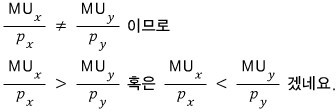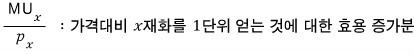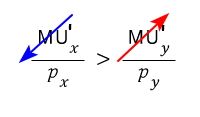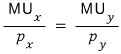 utility gain per won spent on good x > utility gain per won spent on good y