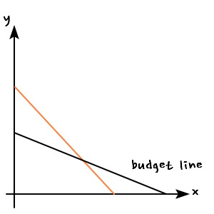 OK so let’s slap this person’s budget line onto the x,y axes@@@@