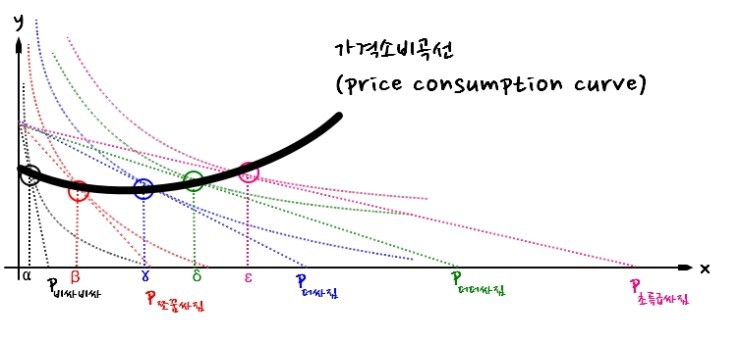 We trace what happens when the price of good x keeps dropping, connect all the utility-maximizing bundles into a price consumption curve, and boom — that's literally where the demand curve comes from.