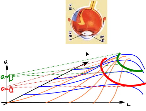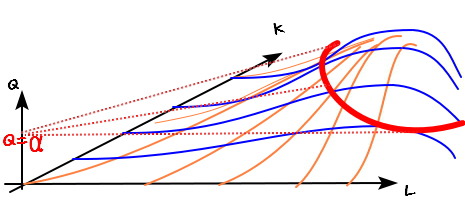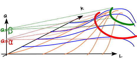 When the K we’re holding fixed is bigger, Q gets more sensitive to L — more bang per unit of L, efficiency-wise. And “sensitivity” on a coordinate plot is just slope.