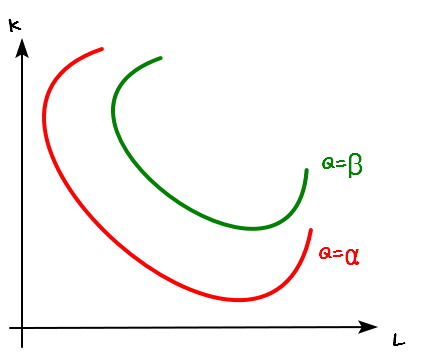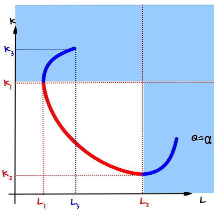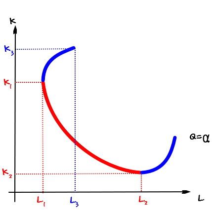 When L goes up, K can come down a notch and we still get the same $\alpha$ — right??????????????