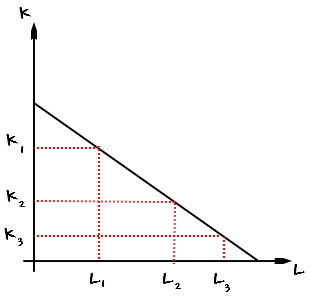 The fact that these points all sit on the same isocost line means that when the user uses L and K like this —