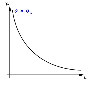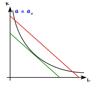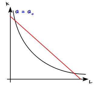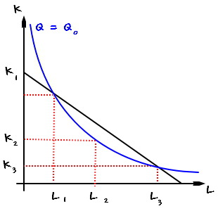 Now, suppose some company’s tech level pins down the set of (L, K) combos needed to produce output $Q_0$ as