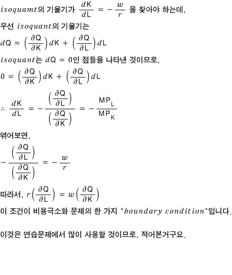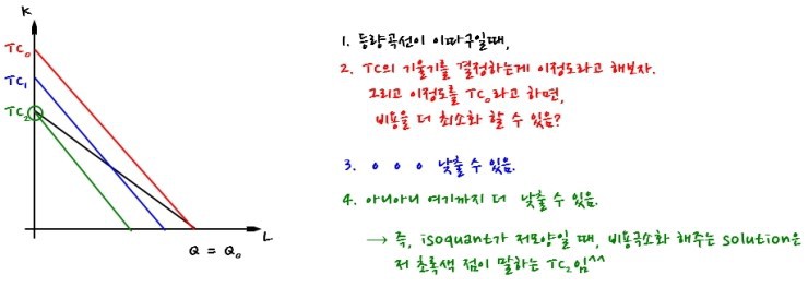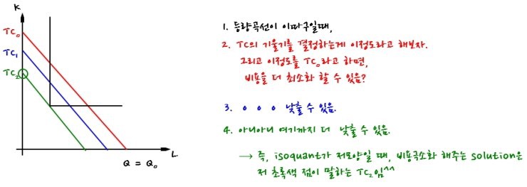 And as the graph above is telling us, if we now write down mathematically the (L, K) point that minimizes cost —